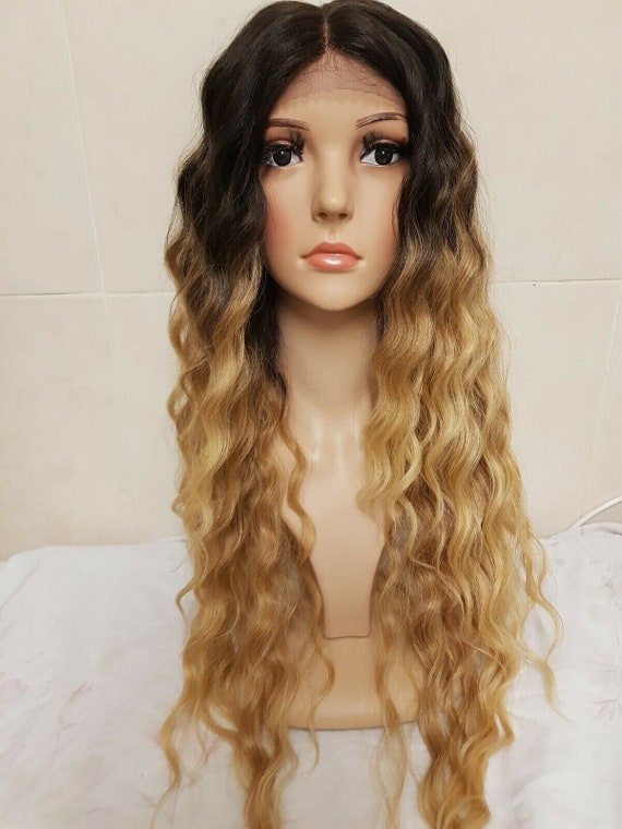 Fast Dispatch Light Blonde Ombre Dark Roots Human Hair Blend Etsy Uk